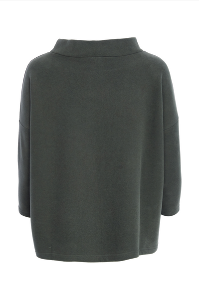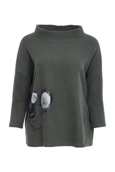This cozy and elegant fleece print top features a high boat neck, bracelet sleeve, circular print detail. This subtle but stylish print is placed to one side.