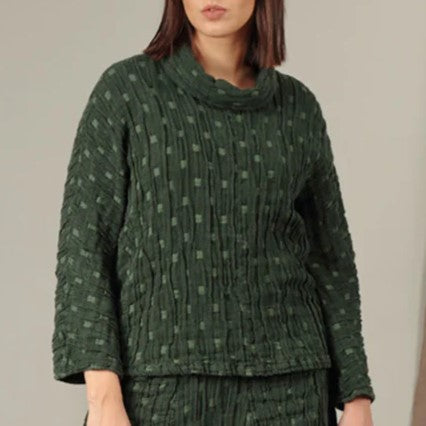 A cowl neck blouse is always a favourite when it comes to the colder season. Especially this one, as it is made from a textured, warm and comfortable cotton-linen blend.